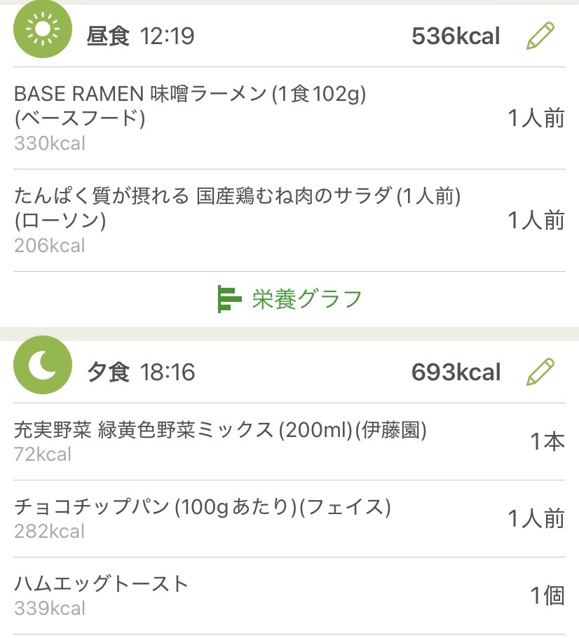 本日の食事内容と摂取カロリー・消費カロリーはこんな感じでした!