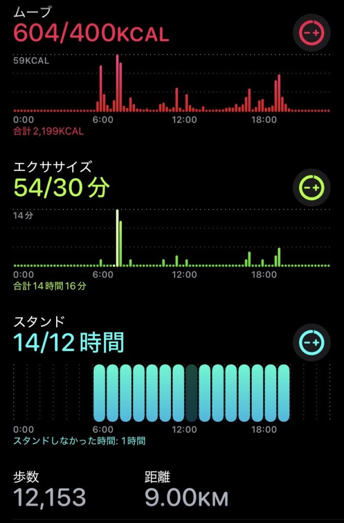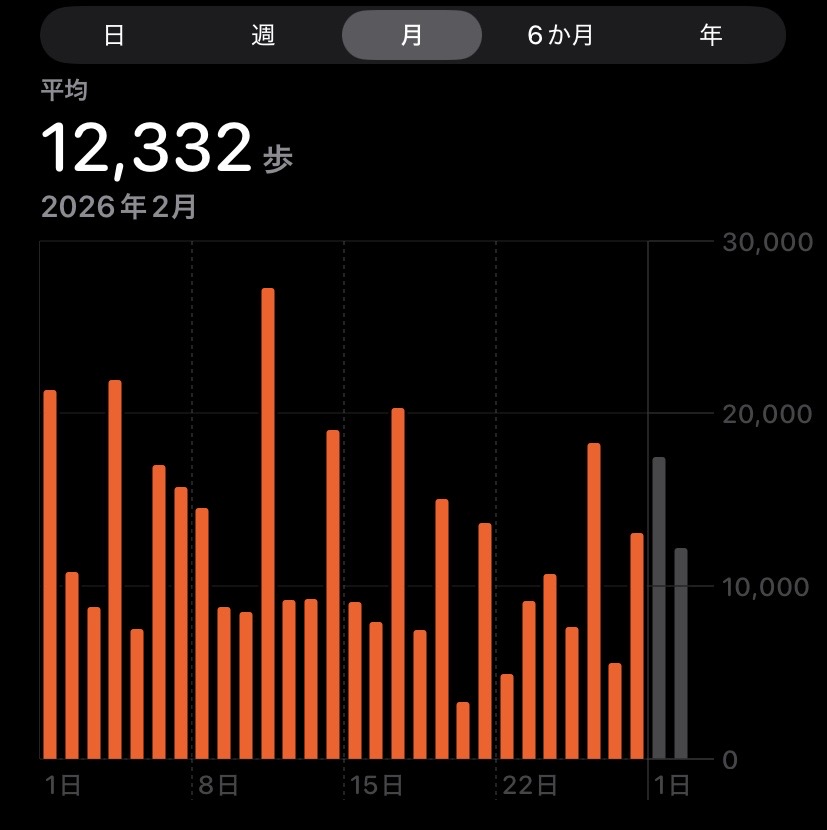 歩数は通勤で歩いていた事もあり平均1万歩以上はキープできました。
