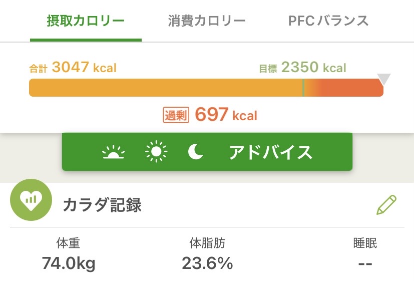 そんな不摂生をした1日の食事と運動の記録です。